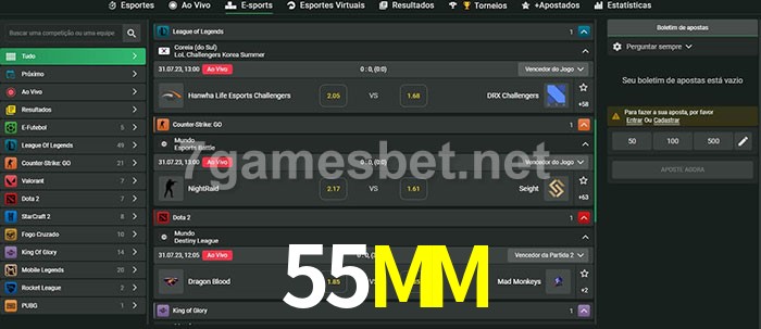 O 55MM oferece uma grande seleção de opções de apostas em e-sports com probabilidades competitivas